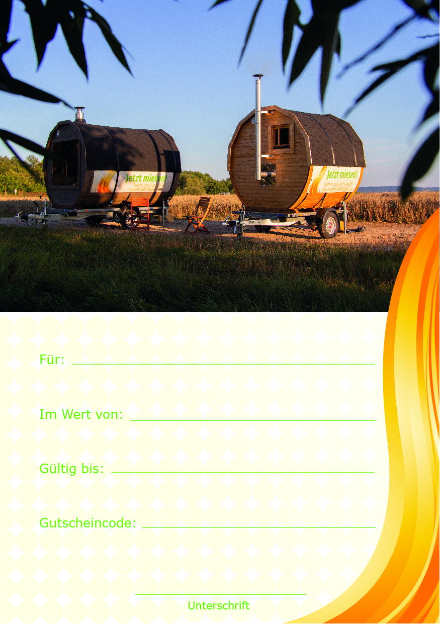 Es gibt so viele Gründe und wunderschöne Ereignisse sich oder seinen Mitmenschen eine Freude zu bereiten. Warum nicht mal Ruhe und Entspannung verschenken oder sich selbst was gönnen! Probieren Sie es aus! Sie werden sehen, genau dass haben Sie gebraucht! Bestellen Sie noch heute einen Gutschein und suchen in Ruhe einen Termin für Ihr Sauna Erlebnis aus.
