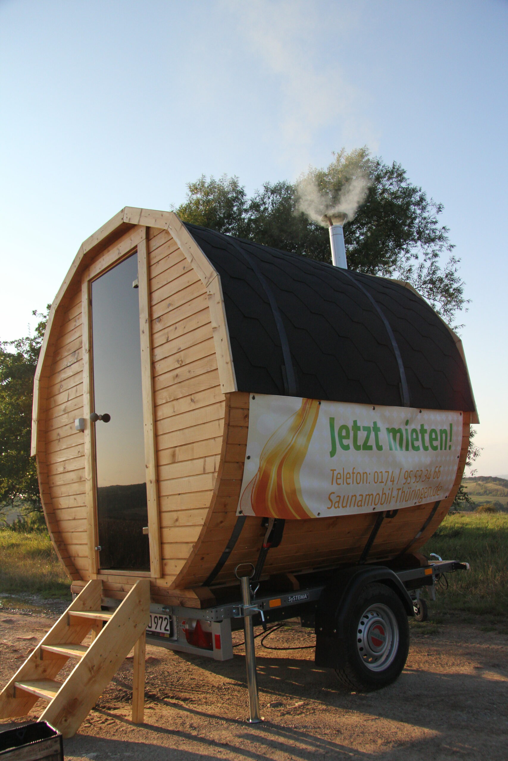 Unser Saunahänger bietet Platz für bis zu 4 Personen. Mit dem holzbefeuerten Ofen können Sie überall und immer saunieren wo und mit wem es Ihnen gefällt. Holz zum Saunieren erhaltet Sie ebenfalls von uns.